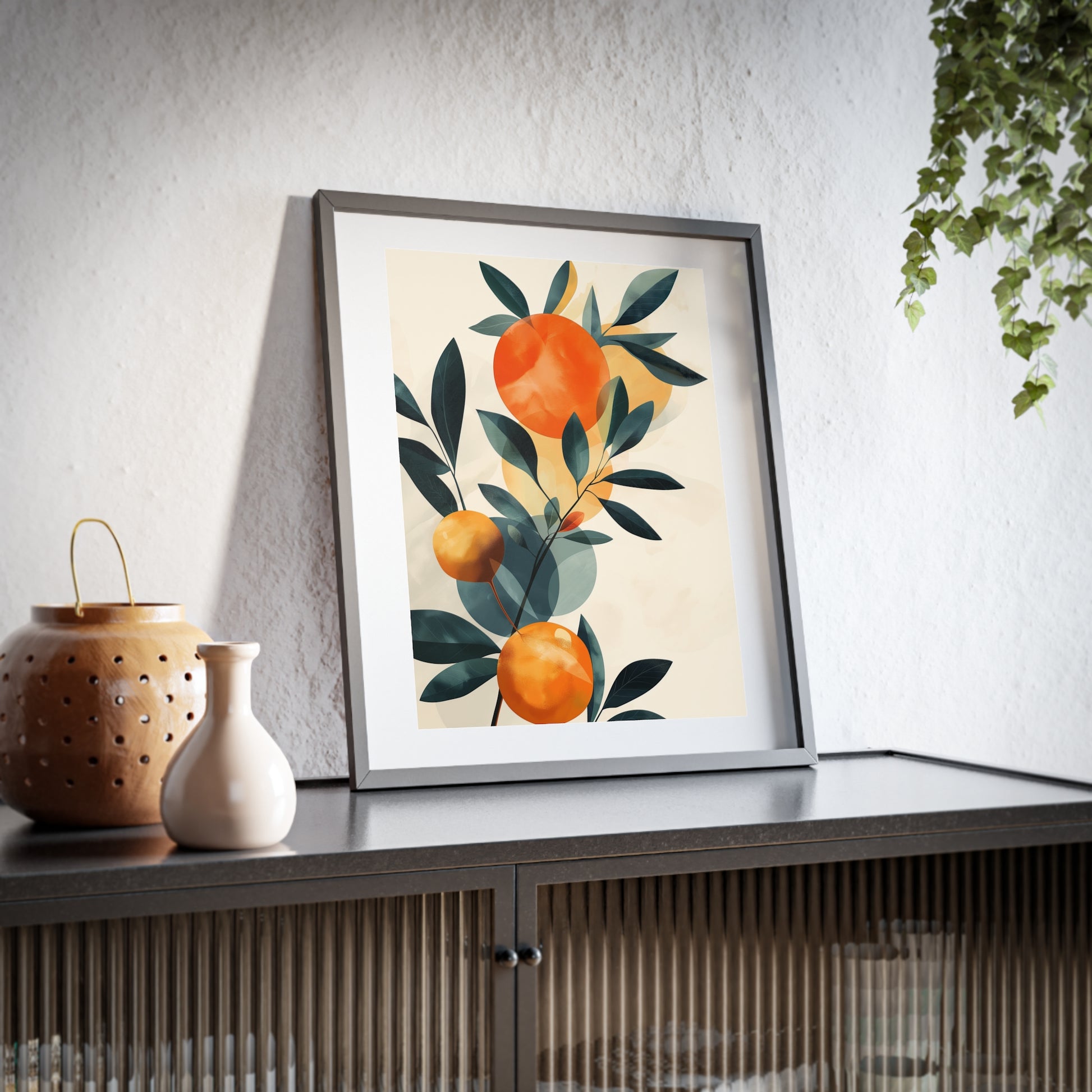 Framed Wall Art, Abstract Orange Plant, Minimalistic Art